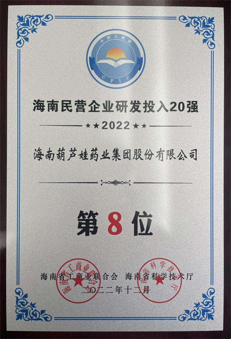 12月23日,2022海南民营企业50强和研发投入20强发布会在海口举行。会上发布了“2022海南民营企业50强”“2022海南民营企业研发投入20强”榜单和分析报告。Stake官网药业再次荣登两榜,在海南民营企业50强榜单中位列第25位,较去年上升8位,这也是公司连续三年登榜;在海南民营企业研发投入20强中位列第8位,较去年上升7位。